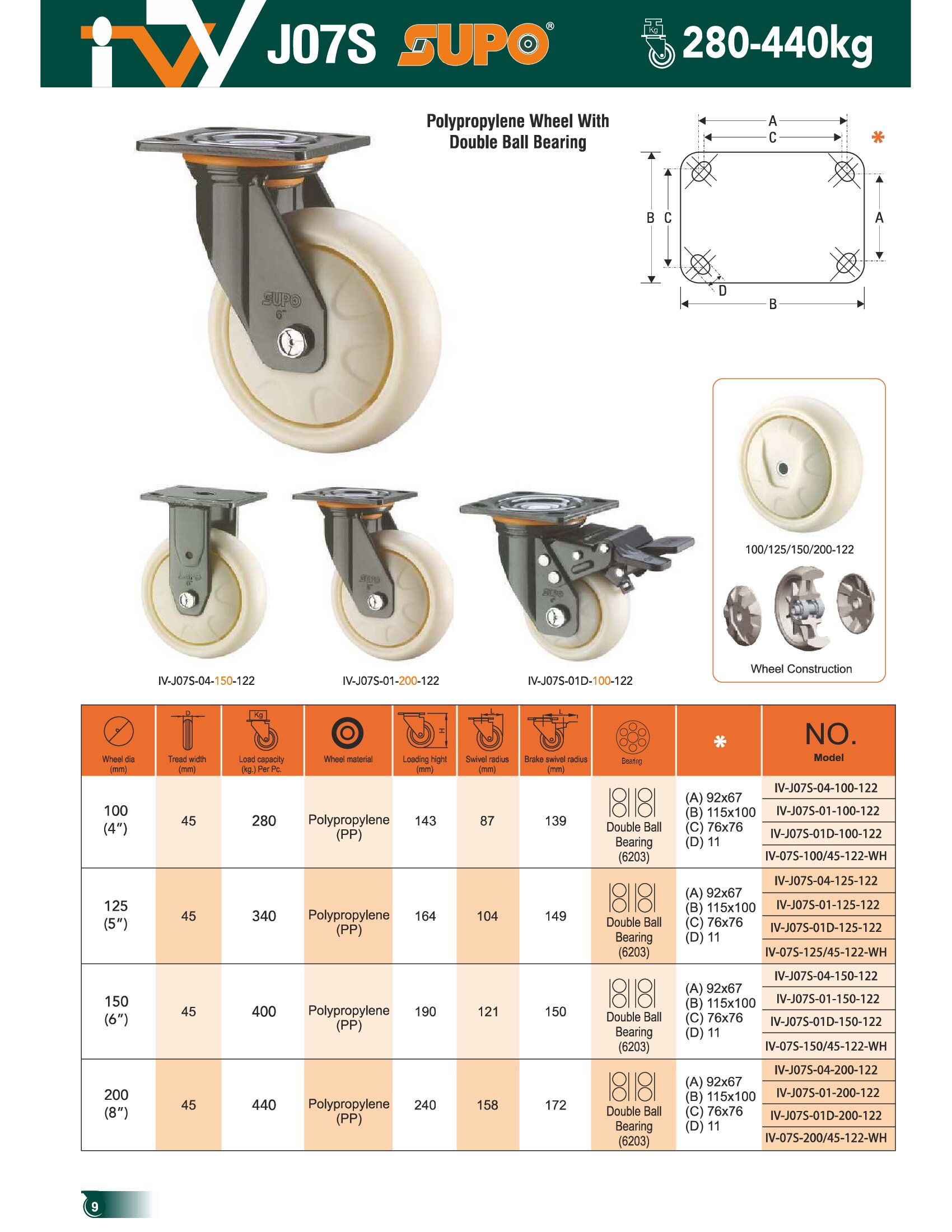 / Heavy Duty PP casters IV-J07-122 series (280 - 440 kgs)